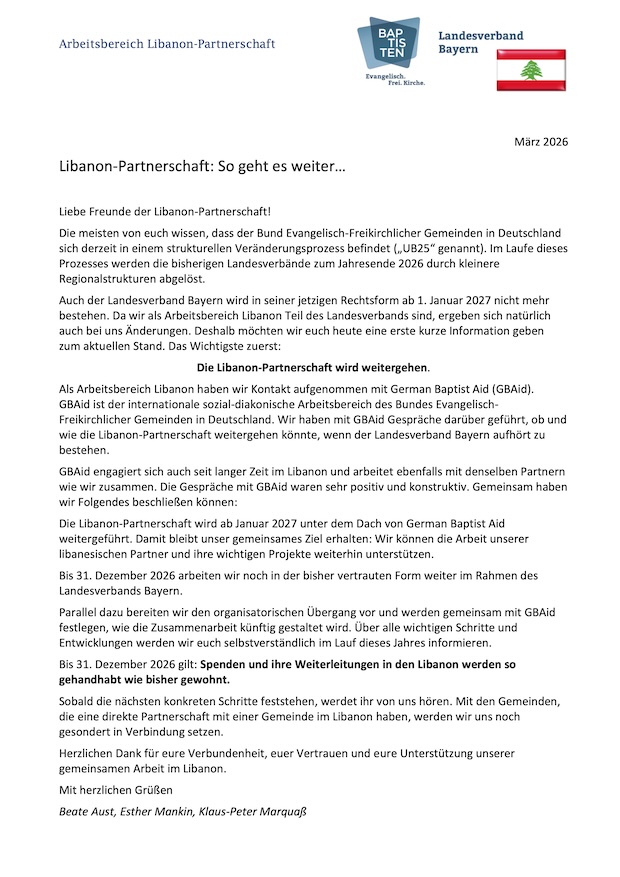 Der aktuelle Libanon-Newsletter Februar 2026 (Nr. 107) liegt hier bereit.